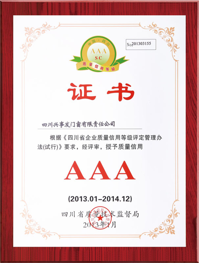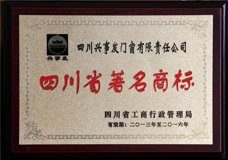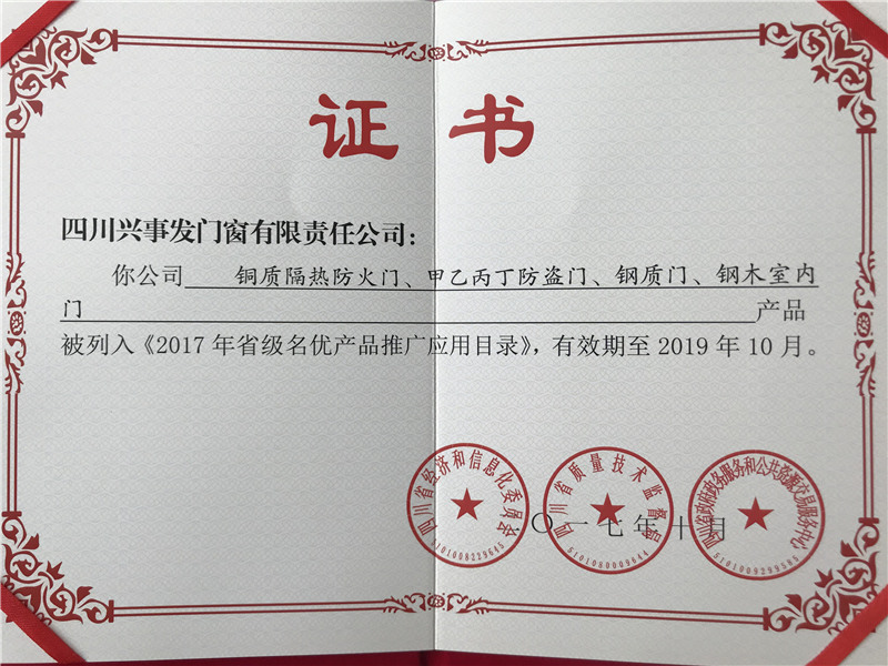 门窗四川名牌证书