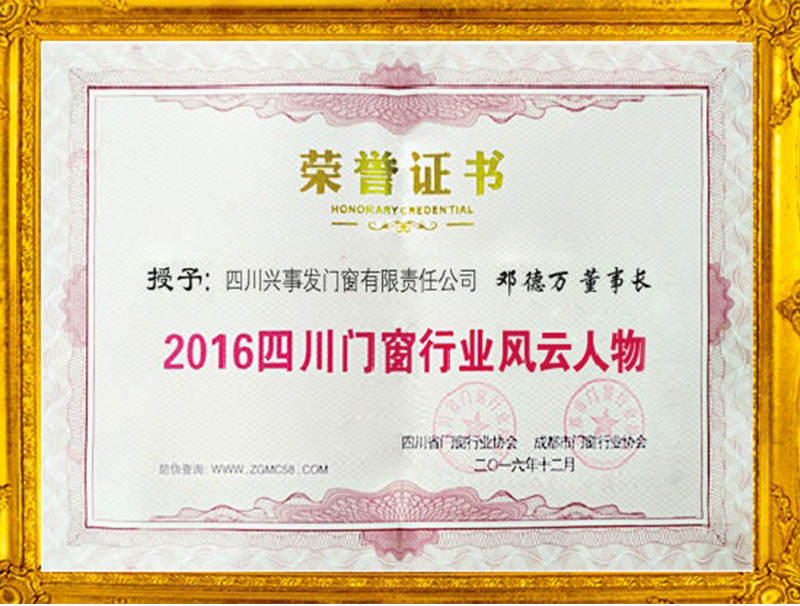 2016年董事长荣获门窗行业风云人物