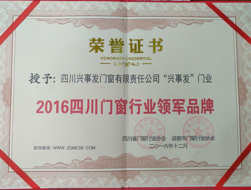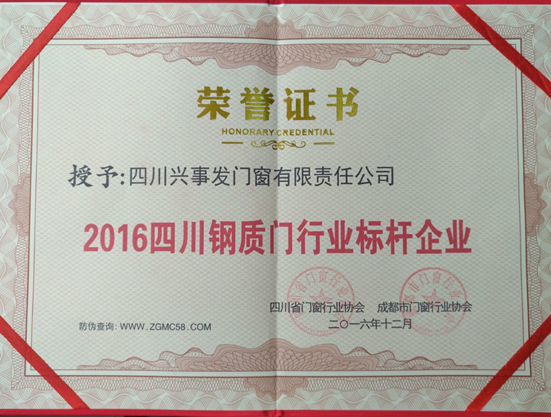 2016年四川钢制门行业标杆企业